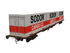 A container flat car reskinned for use on Sodor (TTTE) in the modern era (1970s-present). Auran's original 'Freightliner Container Flat', but repaired and new bogeys added by trainmaster189 (me). You don't have ask for my permission for any reskins.