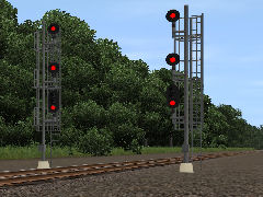 three head interlocking signal, right side. displays slow/restricting. No options for name plates ect.Thanks to RRsignal for allowing me to use his scripts.