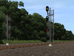 three head interlocking signal, right side. displays normal/limited/medium. please note that the script will allow a restricting aspect but the signal WILL NOT display it!! No options for name plates ect.Thanks to RRsignal for allowing me to use his scripts.