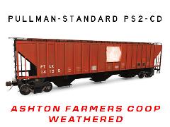PTLX PS2-CD Covered hopper leased to Ashton Farmers COOP Elevator co. Weathered version. 13 Road numbers are included.