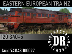 120 340-5 diesel locomotive of East German railways DR, manufactured in Lugansk in 1973, retired in 1995 and scrapped a year later. State and paintscheme of late 1980s. 3d kilanziom, photos qdaty_2010, textures qdaty_2010, script RBach. TRS12+. This model was tested in TS19 with fixed light script. Use view details window to control all options of the model including lights, doors and the nightview.