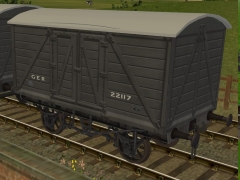 The more common GER 8 ton wood framed covered van with a steel underframe (The early ones circa the late 1880s had a wooden underframe). Uses Jack Barber's high detailed early bogey.