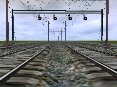 A square route with a Four track Main Line and trains running in both dircetions. The Main has Pennsylvania style Pantographs. There are stations both on and off the main. Trains enter and exit through portals so try to go with the flow of traffic.