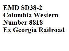 EMD SD38-2 Columbia Western, which were aquired from NREX in 2009 which were numbered 8818 and 8821 and later in 2011 aquired former NP&H (North Piddleton & Happenstance) SD38-3R number 2051.