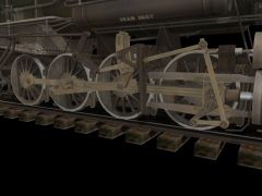 Four axle driving bogey with 57 inch drivers with a 15 ft 8 in wheelbase. Equipped with Alligator crossheads and Walscharets valve gear.
