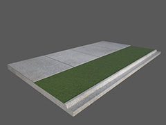 Victorian style footpath with wide nature strip, narrow path version with dark concrete footpath and gutter. The grass texture is by Jamez Shepherd, Trainz user FirstSoloFlight, and is a slightly darkened version of texture asset JS C-003 (HDTP), and is used in accordance with his license under Creative Commons CC-BY-NC.
