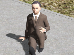 Boy 1 sitting brown suit; primitive Makehuman model