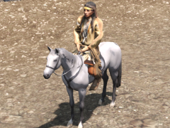 Nez Perce man wearing traditional clothes, seated on standing horse, created in Meshy.ai under paid license; mesh and textures have numerous imperfections. Hi poly model, approximately 16,000 polys, with 3 LODs.
