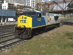 A CSX ES44AH painted in a commemorative Seaboard System fade livery.