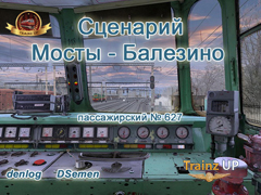 Мосты - Балезино, пассажирский № 627. Сценарий продолжительностью 1 час. Перейдите в кабину нажав клавишу 1 и подготовьте локомотив к работе. Отправление со ст.Мосты в 12.07. Отправляйтесь по расписанию и следуйте до ст.Балезино. Стрелки переключаются автоматически, а так же показания светофоров. Строго соблюдайте расписание! Проследуйте ОП и первую ст.Лельма без остановки. Первая остановка ст.Борисполь, следующая Крутоборка - пропустите скорый и следуйте по удалению с остановкой на ст.Топиллы. Конечная ст.Балезино. Рекомендуемая скорость на перегонах до Крутоборки - 100-110 км/ч , от Крутоборки до Балезино - 90-100 км/ч. Счастливого пути!